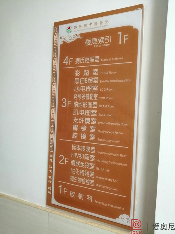 客戶有醫(yī)院標(biāo)識(shí)設(shè)計(jì)制作需求,需要找專業(yè)的醫(yī)院標(biāo)識(shí)設(shè)計(jì)公司。湖南愛奧尼標(biāo)識(shí)工程有限公司是一家標(biāo)識(shí)設(shè)計(jì)、制作公司,擁有15年標(biāo)識(shí)設(shè)計(jì)經(jīng)驗(yàn),100多名專業(yè)生產(chǎn)團(tuán)隊(duì),獲得ISO9001質(zhì)量管理體系認(rèn)證等數(shù)10項(xiàng)榮譽(yù)資質(zhì)證書,電話:400-0731-050