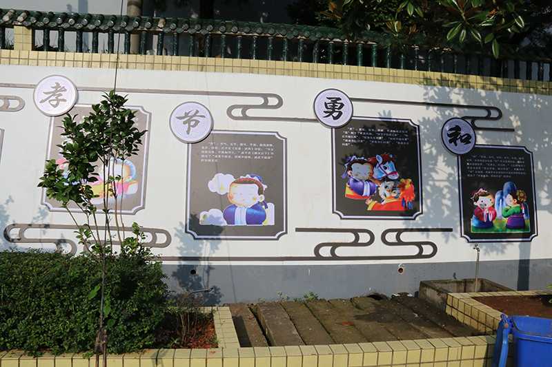 校園宣傳欄一角,采用動漫的設計風格來倡導傳統文化